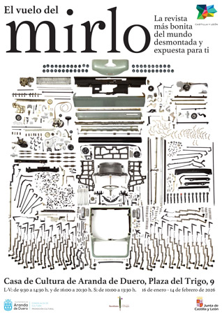 Tras iniciar su itinerancia en septiembre de 2024 en el Palacio de la Isla de Burgos y pasar por el Centro Cultural San Agustín de El Burgo de Osma, El vuelo del mirlo recala ahora en Aranda de Duero, donde puede visitarse hasta el 14 de febrero.