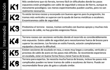 El año 2007, el mismo Eugen Eduard Hüsler actualizo los niveles creando una nueva escala con seis niveles de dificultad del K1 (fácil) al K6 (extremadamente difícil). La letra K, al igual que en la distinción que llevan los mosquetones para vía ferrata, hace referencia a la palabra alemana “Klettersteig” (vía ferrata).